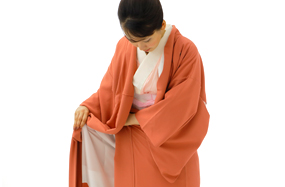 きものを身体に沿わせ、きものを持ち上げましょう。