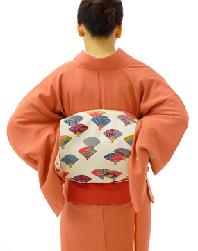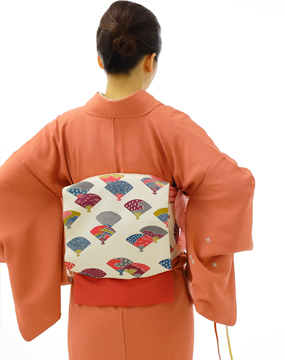 帯揚げの両端を帯の間にはさみながら、結び目も帯の中に半分隠れるぐらい押し込みましょう。