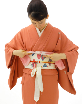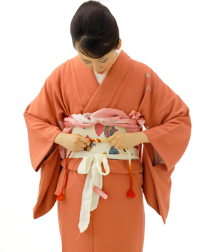 左右の帯締めをゆるまないように、しっかり締めましょう。