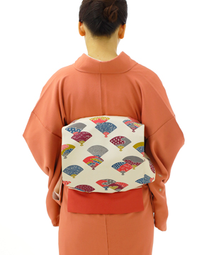 帯揚げの両端を帯の間にはさみながら、結び目も帯の中に半分隠れるぐらい押し込みましょう。